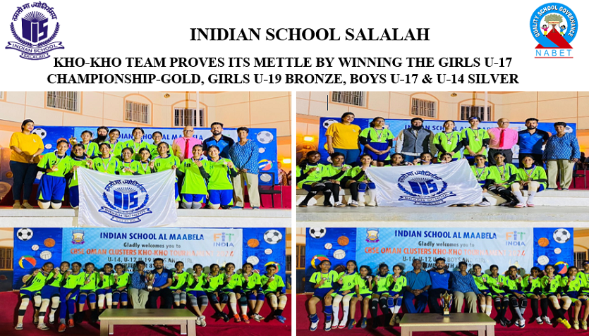 Indian School Salalah under 17 girls proved their mettle in Girls category, competing against 6 teams. They emerged as champions by winning the trophy and Gold medal. Under -19 Girls lost the entry into finals by one point against IS Sur and secured the Second Runners Up position with a score 17- 18. The boys contingent also won glory for their school by emerging Runners up with Silver medal in under 17& under 14 category.