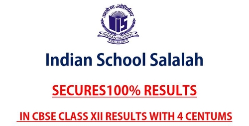 INDIAN SCHOOL SALALAH SECURES 100% RESULTS IN CBSE CLASS XII RESULTS WITH 4 CENTUMS